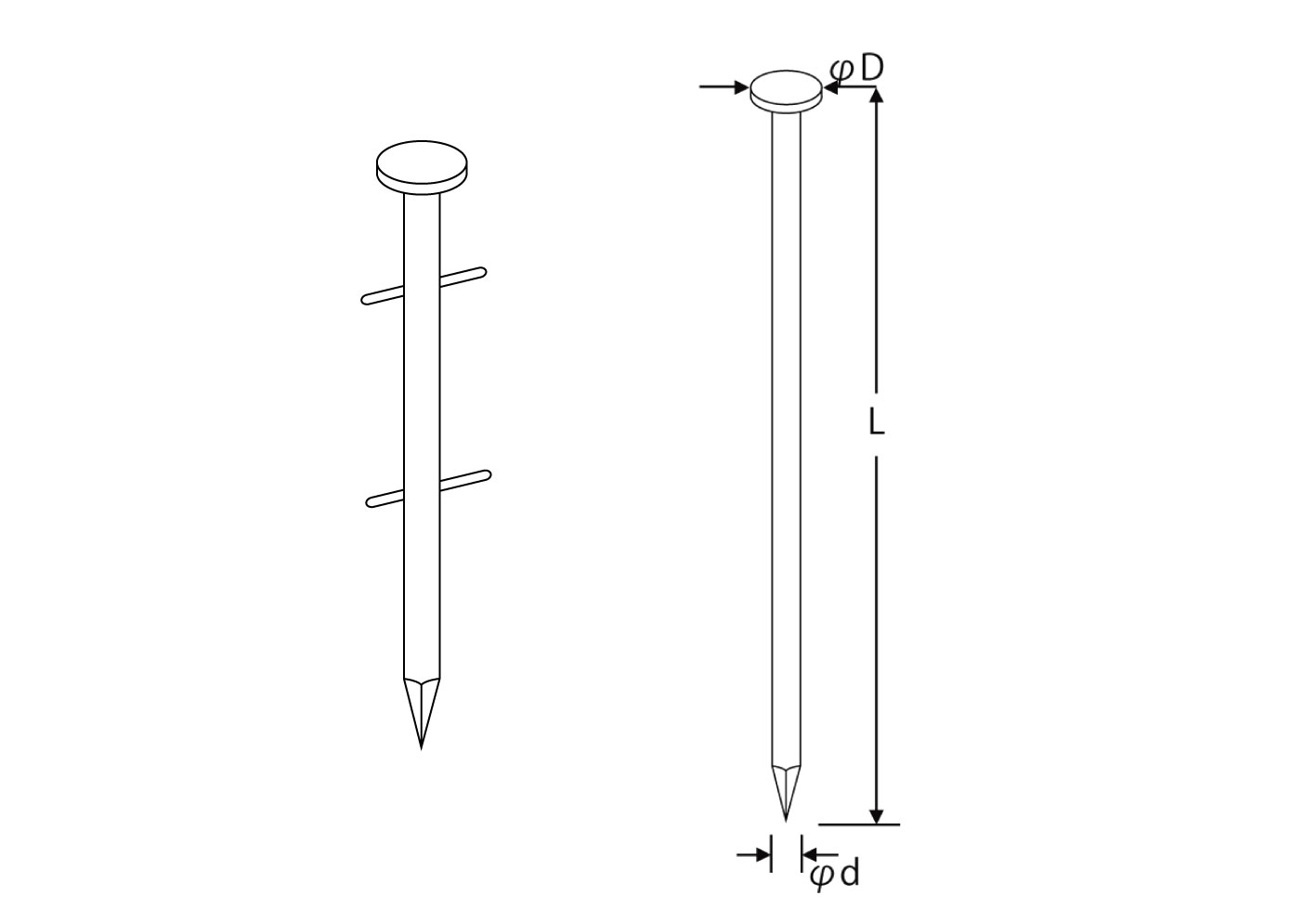 | 分類 | 品番 | 軸径Φd | 長さL | 頭径ΦD | 1巻(本)× (巻)×(函) | 1梱包 入本数 | 1梱包 需要者価格(円) |
